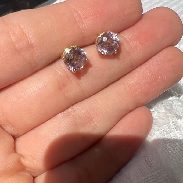 Brinco Ametista Lavanda lapidação especial ouro 18k 7mm