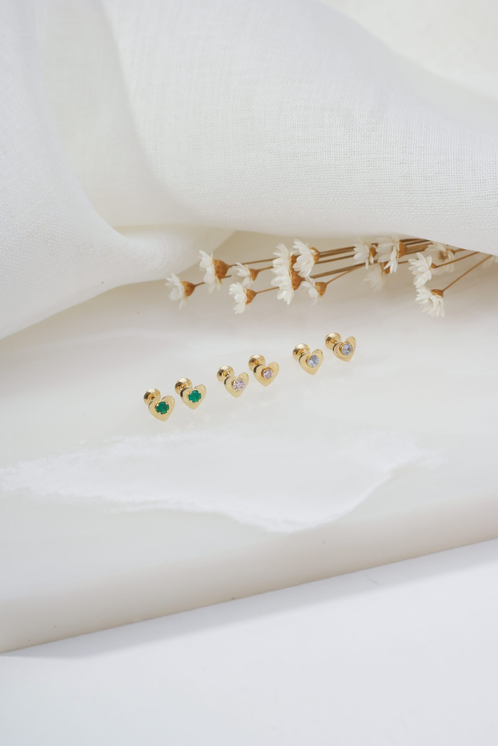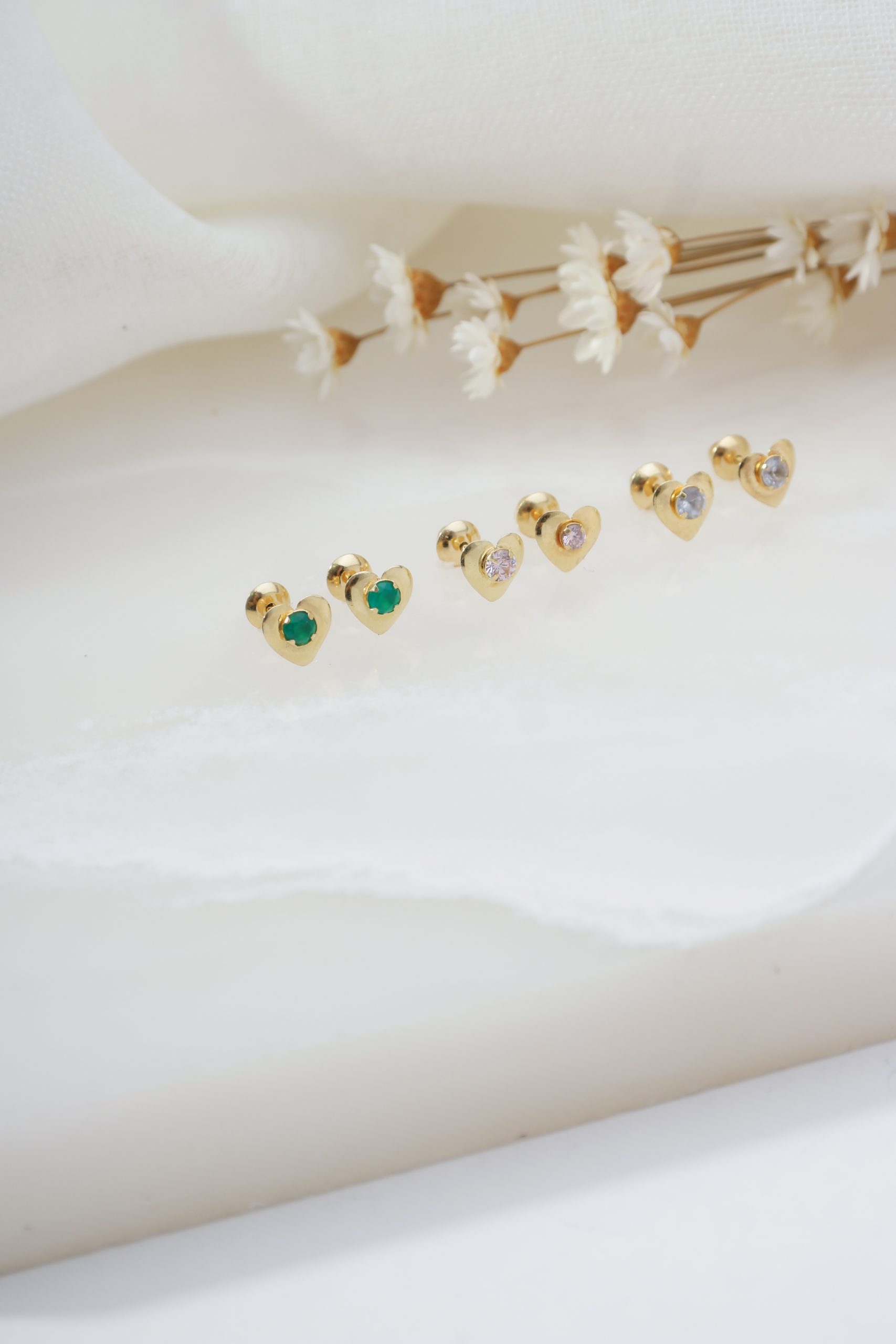 Brinco coração com pedra central
