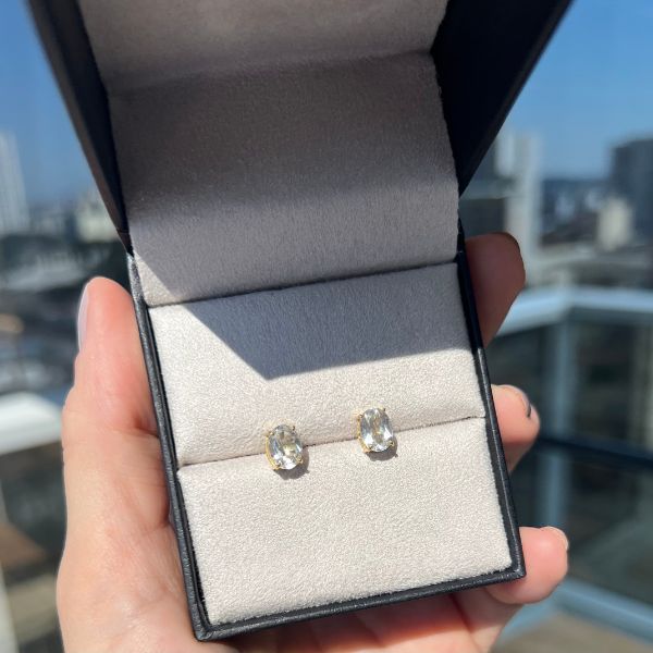 Brinco Oval Topázio Branco ouro 18k