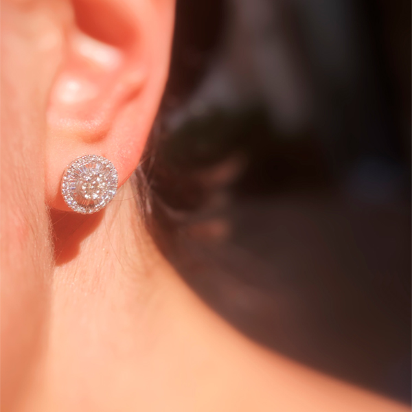 Brinco modelo pizza com brilhantes diâmetro 11mm ouro 18k